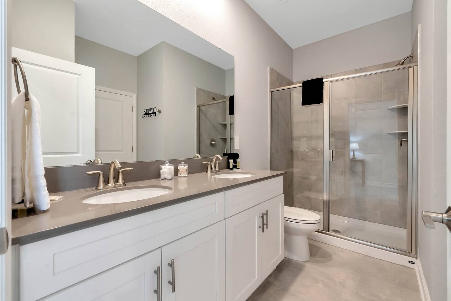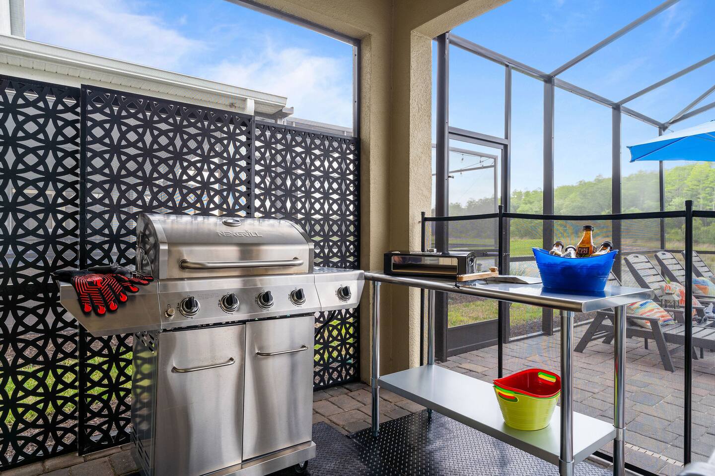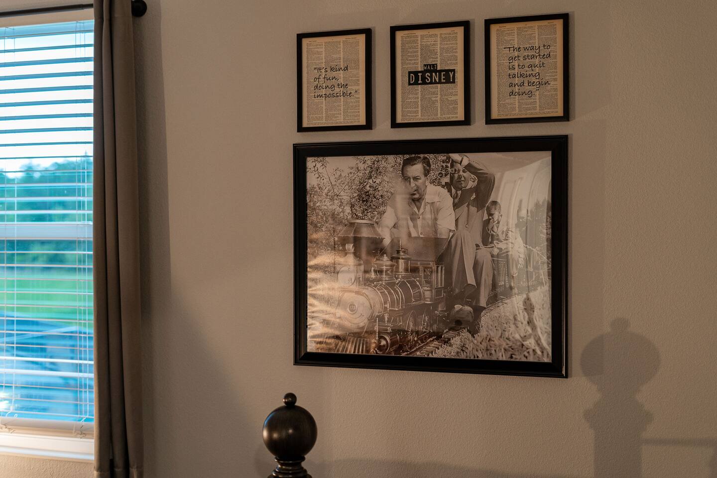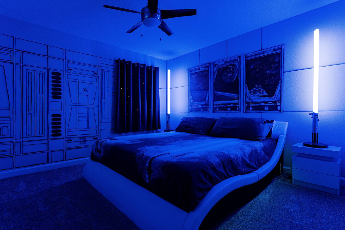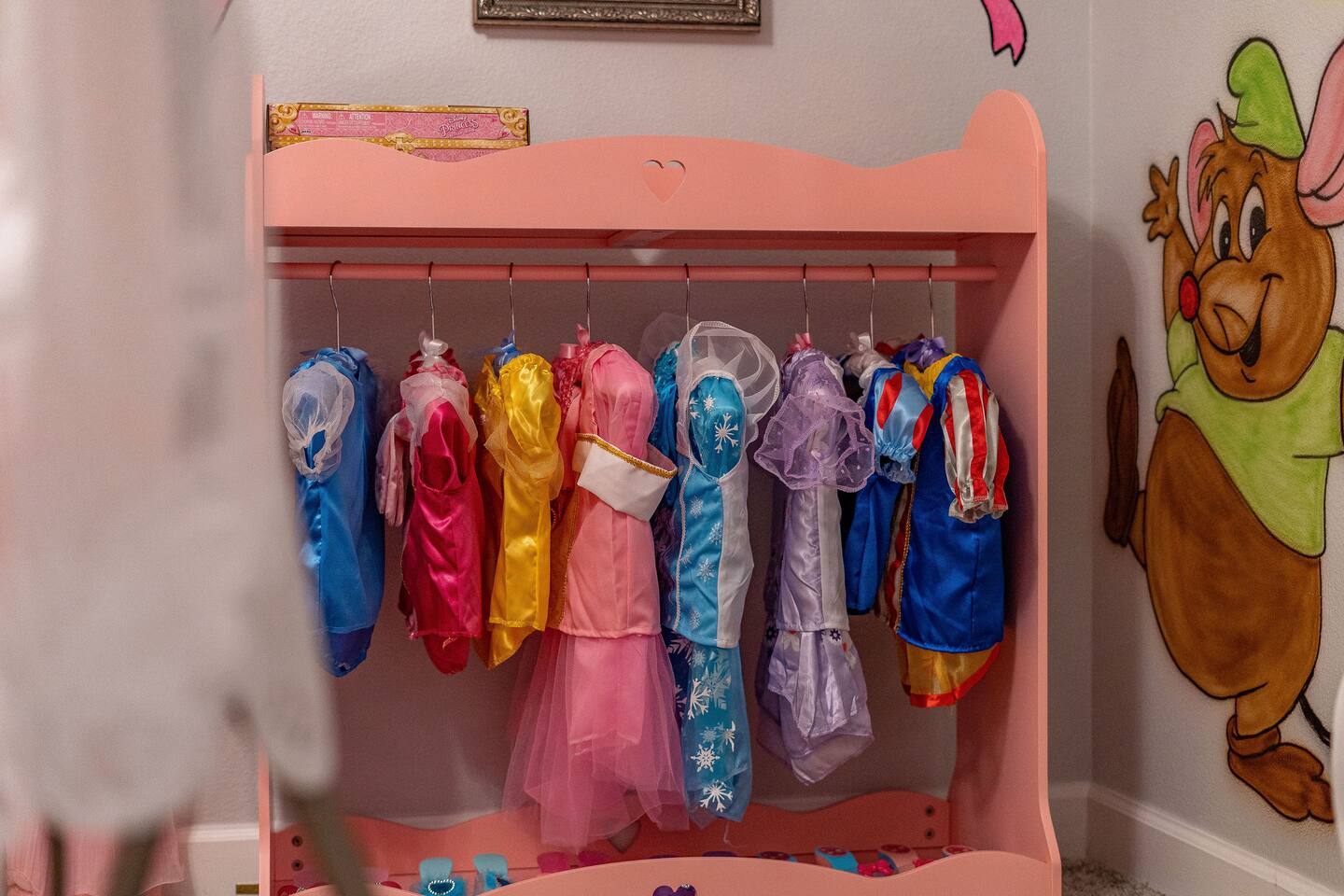 Miraculous Preserve Home: SIZE - 4300 sq ft - Parking on property NINE BEDROOMS - Bedroom 1: 50's/Mid Century Themed Master Bedroom on first floor with King bed, large screen smart tv and private full bathroom with garden tub and separate shower with outside entrance to patio/pool. - Bedroom 2: Western Themed on first floor with King bed, Smart TV, and entrance to full bathroom - Bedroom 3: Tribute to Walt Disney Themed with King bed, Smart TV, and entrance to Jack and Jill full bathroom. - Bedroom 4: Mickey/Minnie Themed with King bed and Smart TV - Bedroom 5: Spaceship Themed with King bed, Smart TV, and entrance to Jack and Jill full bathroom. - Bedroom 6: Superhero Themed with King bed, Smart TV, and entrance to Jack and Jill full bathroom. - Bedroom 7: Beach Themed with King bed, Smart TV and entrance to Jack and Jill full bathroom. - Bedroom 8: Princess Themed with full size carriage bed, vanity, and tent, and Smart TV. - Bedroom 9: Cartoon Themed with two full size beds, Xbox, gaming chairs, and Smart TV BATHROOMS - Bath 1: Full Private Master Bath on lower level with outside entrance to patio/pool - Bath 2: Full Bath on lower level with shower with entrance from Bedroom and hall - Bath 3: Full Jack & Jill Bath on second level with shower - Bath 4: Full Jack & Jill Bath on second level with shower - Bath 5: Full Bath with tub/shower combination LIVING ROOM/KITCHEN - Open concept living/kitchen and dining on lower level with Smart TV and snack bar - Fully equipped kitchen and coffee station GAME ROOM - Two Commercial Arcade Racing Games that can be linked together (play for free) - PacMan Arcade Game - Galaga Arcade Game - Pet Patrol Arcade Game - 75 Inch Smart TV - X Box Series S - Foosball - Air Hockey Table - Game Table - Board Games MOVIE/LOFT AREA - Large screen Smart TV - Theater Reclining Seating OTHER INFO - High Speed Internet - Spectrum Cable OUTSIDE - South Facing Pool backing up to protected Preservation land - Outside Grill with grilling utensils - Private Screened in Pool and Hot Tub with child safety gate - Patio with dining and conversation area with ceiling fans STOREY LAKE COMMUNITY ACCESS - Resort style Pool - Lazy River - Water Park - Spa - Exercise Gym - Basketball, Volleyball, Tennis Courts DISTANCE TO OTHER ATTRACTIONS: - About 6 miles from Disney Entrance without having to get on the busy expressway. - About 13 miles to Universal - About 9 miles from SeaWorld.