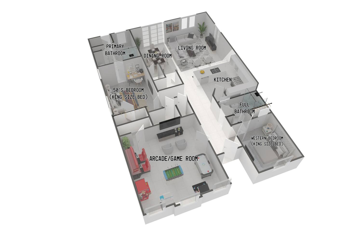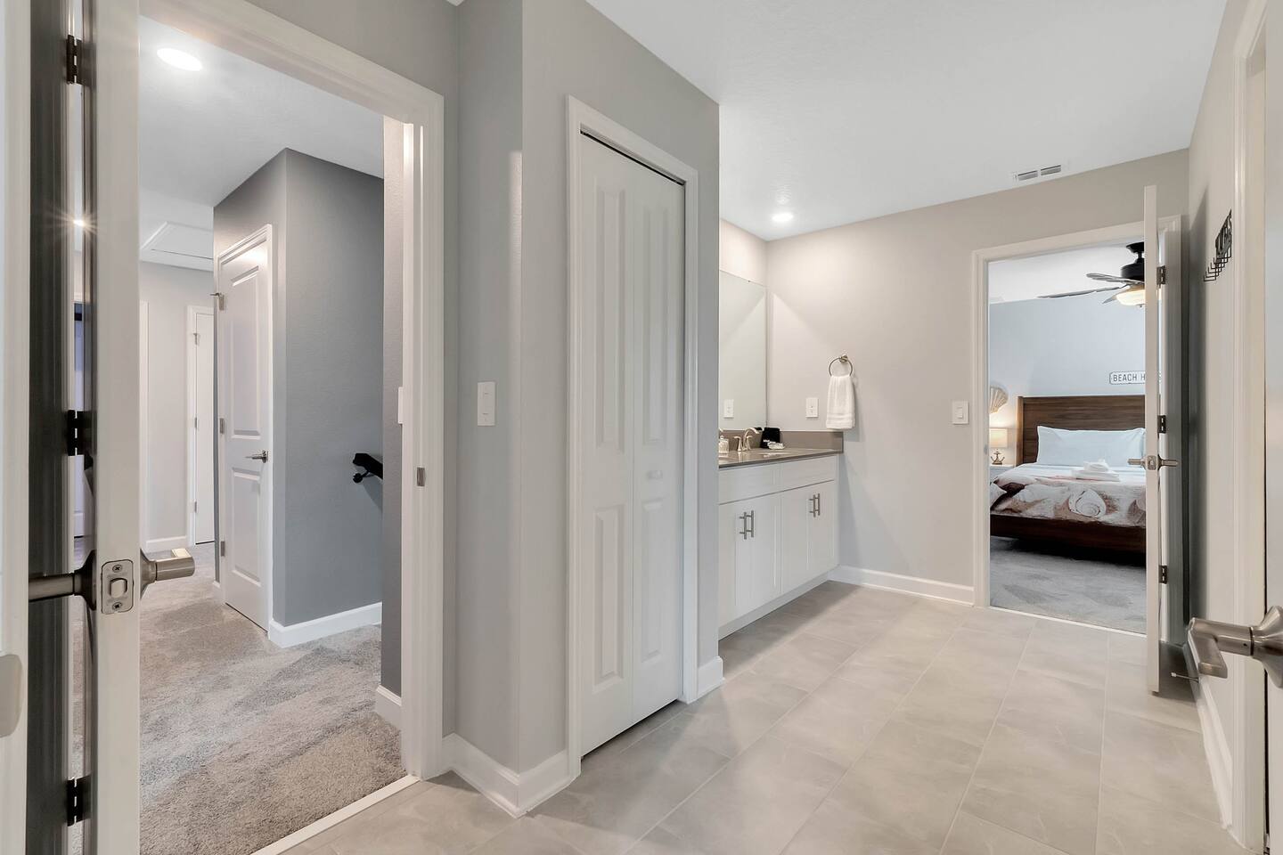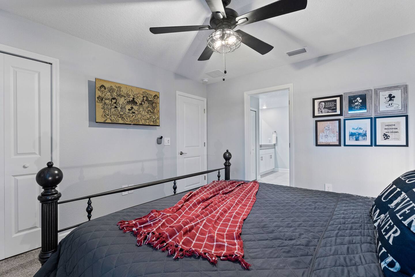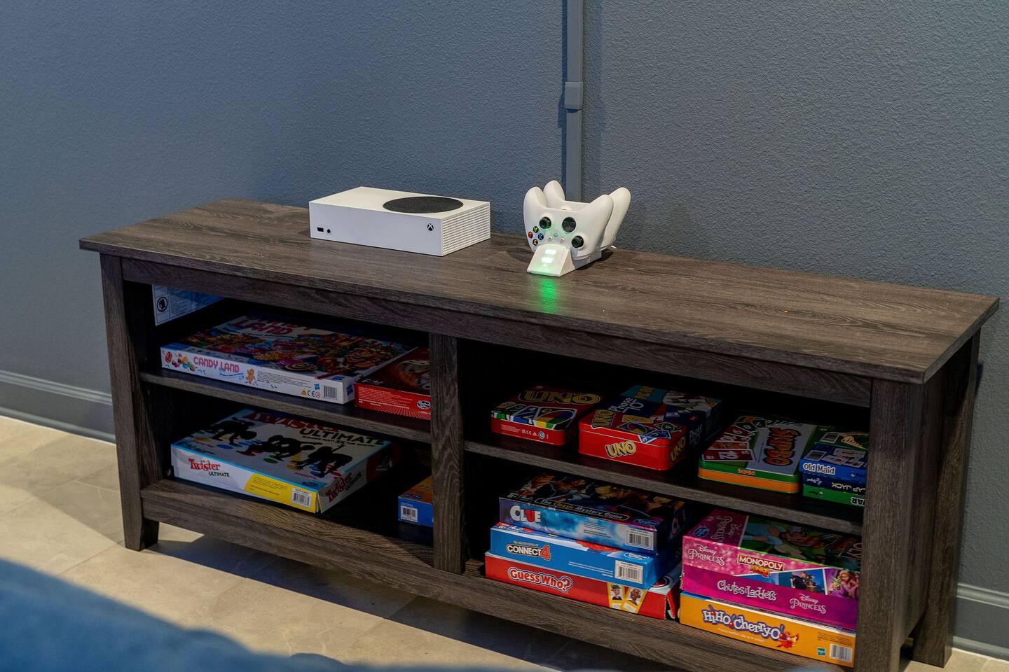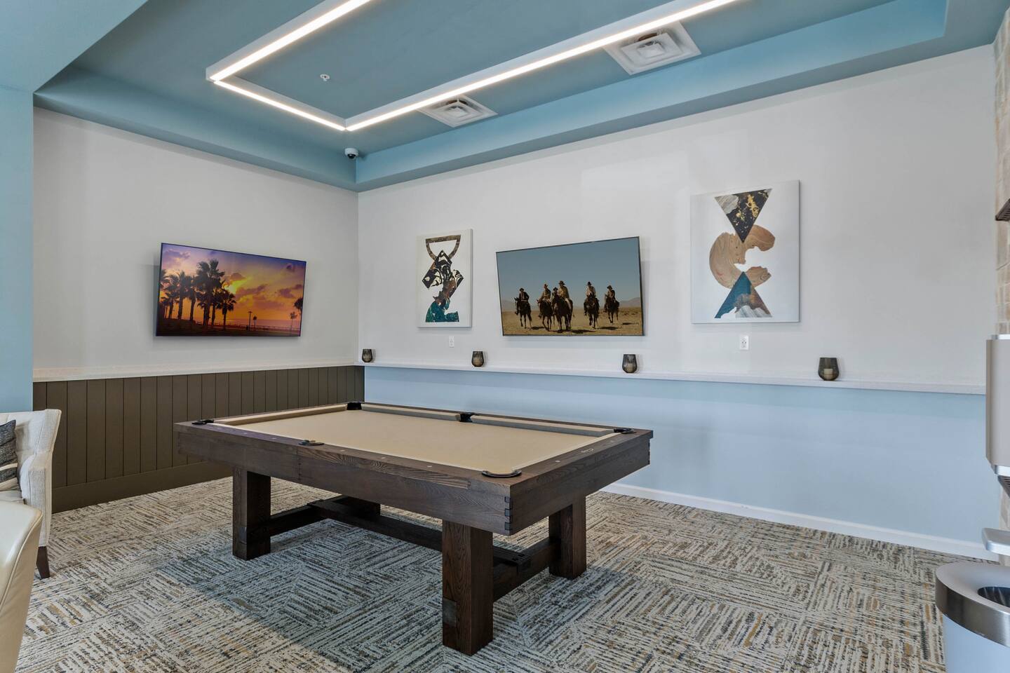 Miraculous Preserve Home: SIZE - 4300 sq ft - Parking on property NINE BEDROOMS - Bedroom 1: 50's/Mid Century Themed Master Bedroom on first floor with King bed, large screen smart tv and private full bathroom with garden tub and separate shower with outside entrance to patio/pool. - Bedroom 2: Western Themed on first floor with King bed, Smart TV, and entrance to full bathroom - Bedroom 3: Tribute to Walt Disney Themed with King bed, Smart TV, and entrance to Jack and Jill full bathroom. - Bedroom 4: Mickey/Minnie Themed with King bed and Smart TV - Bedroom 5: Spaceship Themed with King bed, Smart TV, and entrance to Jack and Jill full bathroom. - Bedroom 6: Superhero Themed with King bed, Smart TV, and entrance to Jack and Jill full bathroom. - Bedroom 7: Beach Themed with King bed, Smart TV and entrance to Jack and Jill full bathroom. - Bedroom 8: Princess Themed with full size carriage bed, vanity, and tent, and Smart TV. - Bedroom 9: Cartoon Themed with two full size beds, Xbox, gaming chairs, and Smart TV BATHROOMS - Bath 1: Full Private Master Bath on lower level with outside entrance to patio/pool - Bath 2: Full Bath on lower level with shower with entrance from Bedroom and hall - Bath 3: Full Jack & Jill Bath on second level with shower - Bath 4: Full Jack & Jill Bath on second level with shower - Bath 5: Full Bath with tub/shower combination LIVING ROOM/KITCHEN - Open concept living/kitchen and dining on lower level with Smart TV and snack bar - Fully equipped kitchen and coffee station GAME ROOM - Two Commercial Arcade Racing Games that can be linked together (play for free) - PacMan Arcade Game - Galaga Arcade Game - Pet Patrol Arcade Game - 75 Inch Smart TV - X Box Series S - Foosball - Air Hockey Table - Game Table - Board Games MOVIE/LOFT AREA - Large screen Smart TV - Theater Reclining Seating OTHER INFO - High Speed Internet - Spectrum Cable OUTSIDE - South Facing Pool backing up to protected Preservation land - Outside Grill with grilling utensils - Private Screened in Pool and Hot Tub with child safety gate - Patio with dining and conversation area with ceiling fans STOREY LAKE COMMUNITY ACCESS - Resort style Pool - Lazy River - Water Park - Spa - Exercise Gym - Basketball, Volleyball, Tennis Courts DISTANCE TO OTHER ATTRACTIONS: - About 6 miles from Disney Entrance without having to get on the busy expressway. - About 13 miles to Universal - About 9 miles from SeaWorld.